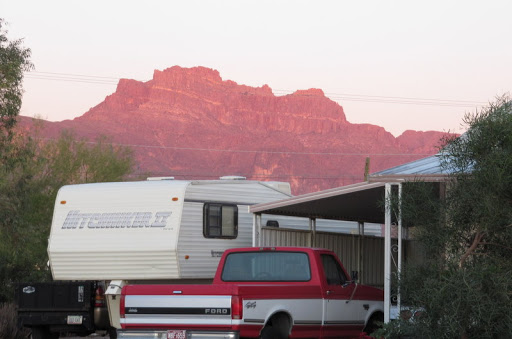 We arrived at the KOA in Apache Junction in plenty of time to get hooked up. We were even treated to an amazing effect that sunset creates with Superstition Mountain.
