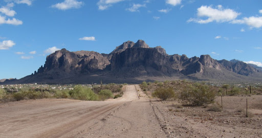 The last part of the trip took us through the Usery Range before dropping down into Apache Junction on AZ-80. Once we pulled out of the Usery Recreation area we were into the farthest-east developments. Traffic was heavy enough that I was only able to get occasional glimpses of where we were, but my sense of it was that everything was new. There are surely older areas here, but the greater mass of what’s here seems to be post WW-II. Very noticeable to someone that’s been living in Santa Fe for a few years.