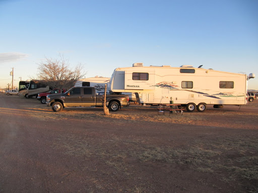 Here we are in Van Horn, TX, all connected and ready for din-din. I asked an employee at the Las Cruces campground what I was going to find in Van Horn besides the KOA Kampground where we’re parked for the night. He said “It’s kind of like an oasis.” I asked “Really? It’s that good?” “No… it’s more like the only thing that isn’t desert. Nice little town, but there’s not much around there.” He was right on the money, but it’s still a nice stop for a weary driver and the campground is very easy to get in and out: every site is a pull-thru.