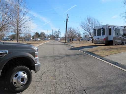 The KOA in Conroe Lake is a huge RV park. It was originally an independent, but newer owners chose to join the KOA system. This is the first time we’ve seen a high-end RV park and we were taken aback by all the ‘toys’. Like the indoor/outdoor pool and 2 fenced dog playgrounds. This park set a new standard for us. But with the cold temps the place was nearly empty save for the employees and us. Oh… and this brand new New Horizons. Roger & Debbie gave us the cooks tour and it’s gorgeous. And big! You can’t see the big red Volvo 610 they pull it with, but it’s normal to see a 610 as the tractor of an 18-wheeler.