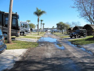 After Wildwood we were off to Lake Okeechobee KOA. Okeechobee was our first experience with a really crowded and upscale destination resort. If, like us, you’re not a golfer, you’ll probably feel out of place! I thought the sites were really tight (I now realize I had no concept what “tight” really means in an RV resort!). But no one seems to complain since they spend most of there time on the golf course or one of the two swimming pools. And they have entertainment at their convention center, e.g. The Four Aces were on the bill. The best feature was a mini dog park where the girls could be off-leash for awhile. I think Kelly set some sort of speed record for the facility and Annie had a great time herding Kelly. It was great watching them have a really good time.