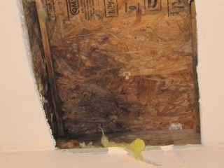 The shop was not so easy. We had our favorite builder (Daniel Tellez) take a look and he cut a hole in the ceiling to confirm that there was mold damage. Once more wallboard on the ceiling was cut away I could see what was causing the problem. It turned out to be coming from a poorly sealed area at the canale (the troughs that allow the roof to drain). The roofer who installed the foam roof said it was a bunch of holes caused by bees and sent a bill for repairs. Some warranty, but both the warranty and the leaks are about what I’ve been told to expect. Welcome to the real world, Bruce!