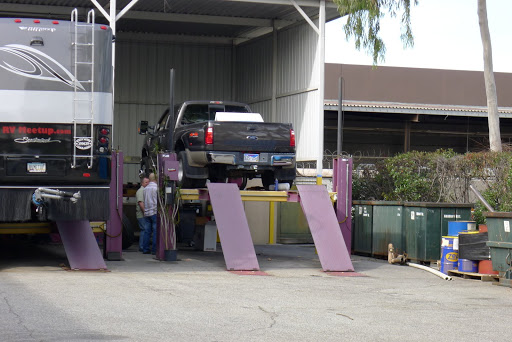 So, with neighbor & friend Mike Phelps as co-pilot, we drove to Azusa, CA to have Banks’ Big Hoss kit installed. Banks is a pretty large operation (something like 700 people working in 7 buildings) with a division dedicated to installation and repair (Banks Powerhouse). Check-in was at 6:00 AM and the shop closes at 3:00 PM, so we were there when they opened. Apparently we would have been out of there by 11:00-11:30 AM but for one small problem. Oue truck has a factory installed option of a roll-over ball gooseneck hitch. It’s made by B&W in Kansas and is a perfect match for our B&W Companion (5th wheel) hitch. Since it was a factory option, Banks had to get their Tube Shop involved (they manufacture the exhaust systems and the headers). banks hadn’t previously had a truck available to them to be able to make the necessary measurements, so our truck became a Beta test site. Almost 2 hours later we saw someone walking across the street with about 4′ of bent 4″ exhaust tubing over his shoulder. Another 2 hours and the truck pulled out for a test ride.