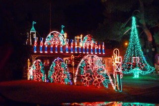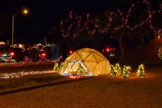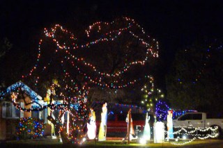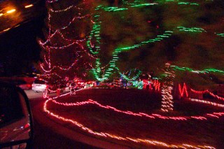 It’s pretty easy to do. There’s a street in Winterhaven area of Tucson named Christmas Ave. Property owners there go all out decorating their yards, trees, houses, cars or anything else that stays put for a few hours in the evening. I guess when you live on a street with a name like that you have no choice. Even those in the neighborhood who don’t celebrate Christmas join in. Like the house with the makeshift minora made from plastic pipe; and another with a giant dreidel.