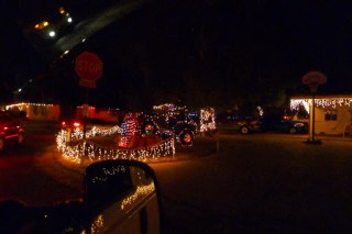 Mike did his homework and got us there quickly: I-10 to Exit 255. N on Miracle Mile (past the NoTell Motel… seriously!) to Oracle, 2 blocks left to Ft. Lowell, then down Ft Lowell to Christmas Ave. He even found a map of the neighborhood that showed the proper route to drive through the neighborhood. It needs to be organized cuz there are a lot of cars! Tucson police control all vehicle access and each of the entry points is lighted with emergency lighting. There are only 3 nights when cars are permitted into the area, otherwise you have to make it by foot. There’s an entry fee: as many canned goods as you can afford. The only problem I saw is that pedestrians are permitted onto the same streets as the cars, so it can get a little scarey and we needed to stay alert.