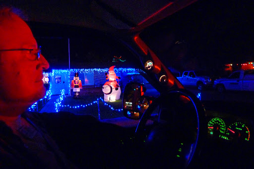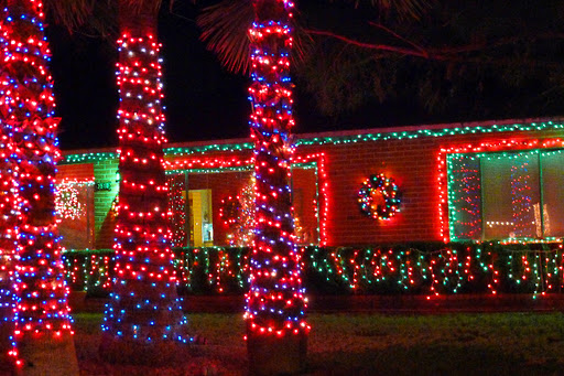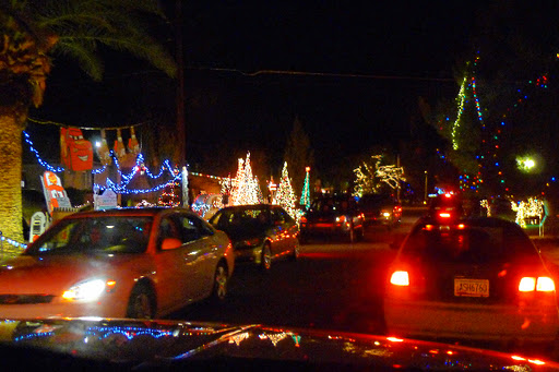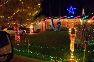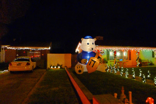It’s pretty easy to do. There’s a street in Winterhaven area of Tucson named Christmas Ave. Property owners there go all out decorating their yards, trees, houses, cars or anything else that stays put for a few hours in the evening. I guess when you live on a street with a name like that you have no choice. Even those in the neighborhood who don’t celebrate Christmas join in. Like the house with the makeshift minora made from plastic pipe; and another with a giant dreidel.
