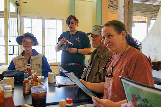 Bisbee is a fun place to visit for a few hours. We learned about the Bisbee Breakfast Club restaurant in the old town of Lowell (now part of Bisbee) and have gone there a few times. We had lunch there with friends Jeff, Brian & Susan (plus Donna, Susan & Mike off to the left) then did the tour of the town… 10 minutes?