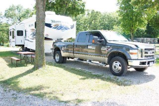2. We got a call from GloWood Campground in Pendleton, IN that they had an site with our name on it. So we skipped from Camp Lakewood a day early. That meant 2-160 mile days instead of 1-320 mile day. Turns out getting a reservation anywhere near Indianapolis is something of a miracle… the Indy 500 is tomorrow (Sunday). Duh! But we won't be here since we're on our way to Elkhart, IN.GloWood is a little rough around the edges and I wouldn't want to be here with rain… lots of ruts betray poor drainage. But it has all the right things and the site is surprisingly level. Lots of room between site (30'?).