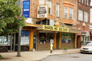 So off we went to Sharon, PA, about 50+ miles south. We found our way to the Sharon town center, walked the dogs, and then the Admiral spotted the Sharon Hot Dog Shop across the street. Life is good.