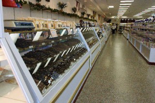 Fortified with a couple chile-cheese dogs, I was ready for whatever. Celia asked our waitress if she knew of any large candy stores in the area and she immediately told is about Daffin’s just up the street a few blocks.