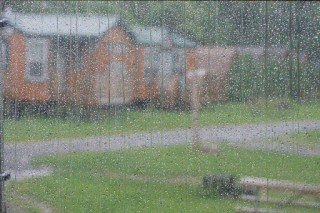 First off, it rained all night before we pulled out of Le Roy, NY. And it rained as I hooked up at Genesee Country Campground. Then it rained all day as we drove here. And it rained while we set up camp. It did stop raining right after I’d finished setting up, thank you very much! Desert rats are not used to this sort of thing. Go ahead… call me a wimp!